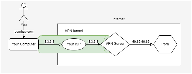 In very simple terms, when you use a VPN provider, a VPN server sits in between your computer and the destination website you wish to access.