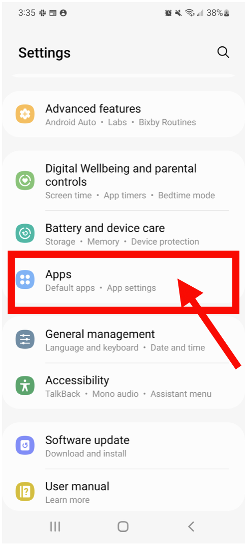 - In your Device Settings, go to Apps. You can also search for "Apps" in Settings