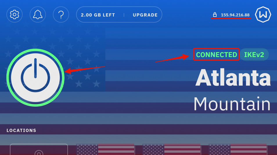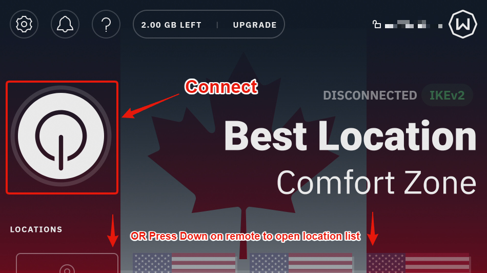 You can press the big Connect button on the left to connect to the VPN (you will connect to the Best Location which is typically the closest one available to you)