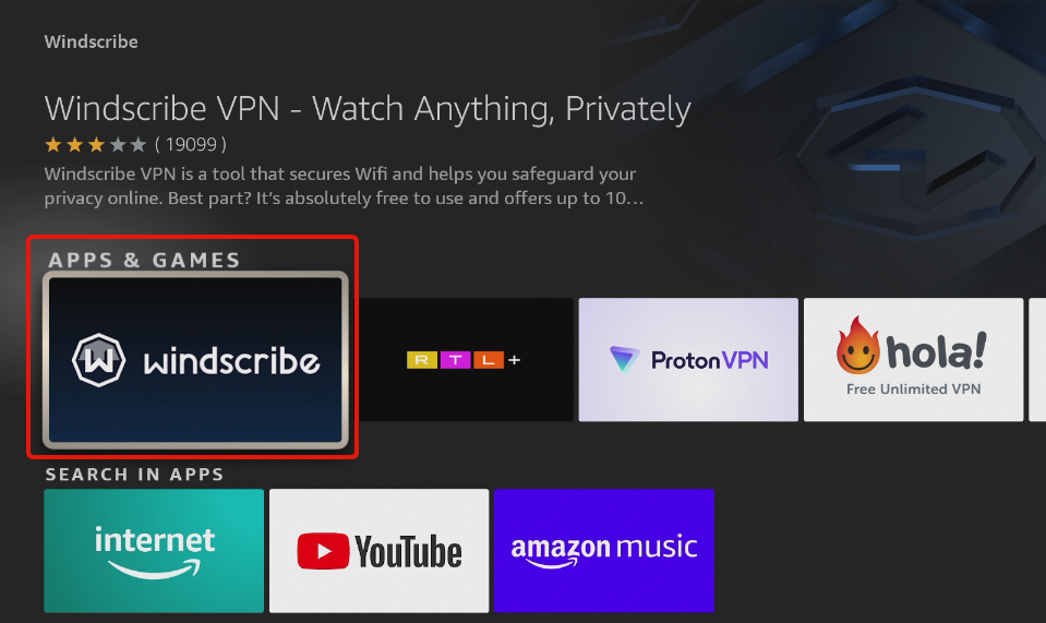 Using Windscribe on a FireTV device is as simple as using any other app on it.