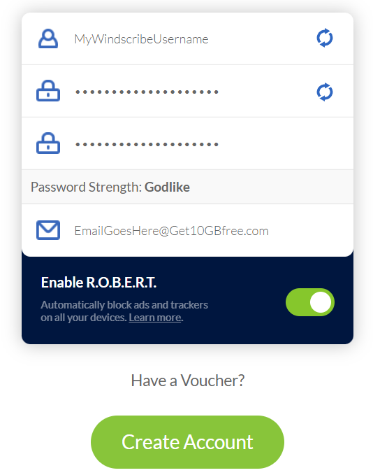 - Начните с регистрации аккаунта на этой странице: https://windscribe.com/signup. Вы можете получить 2 Гб бесплатного трафика (без е-мейла) или 10 Гб (с е-мейлом). С е-мейлом, как только вы подтвердите свой адрес электронной почты, нажав на ссылку, которую мы вам отправили, вы сразу получите 10 Гб бесплатного трафика каждый месяц.