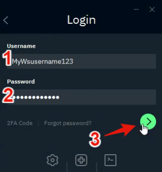- Введите имя пользователя, пароль и нажмите зеленую стрелку чтобы войти.