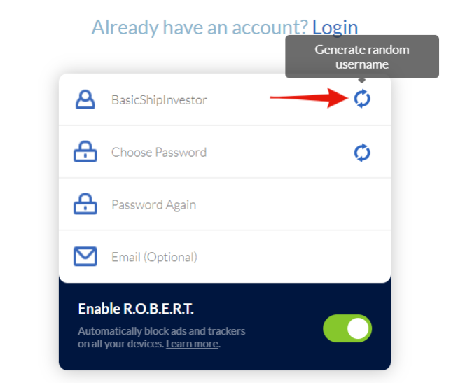 Username - For the sake of anonymity, avoid usernames with your name or any personal information in it or just use our random username generator right on the sign up form.